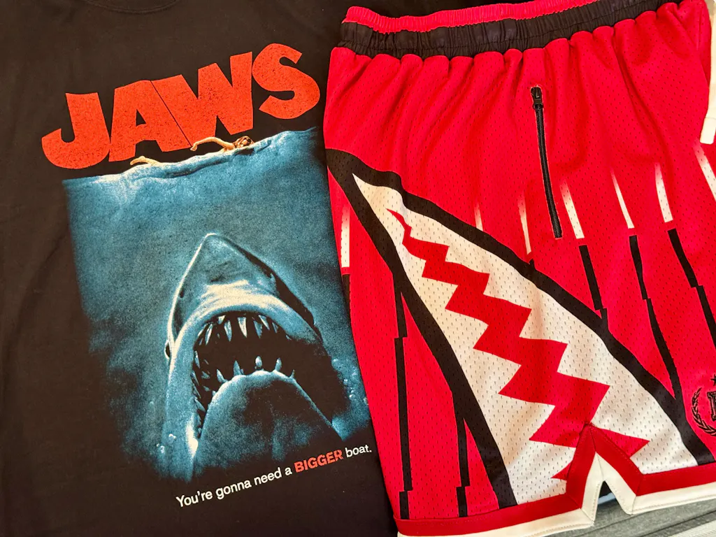 Love the look and feel of these shorts! The shark teeth design on the side pair perfectly with my Jaws shirt. Great quality and comfortable.